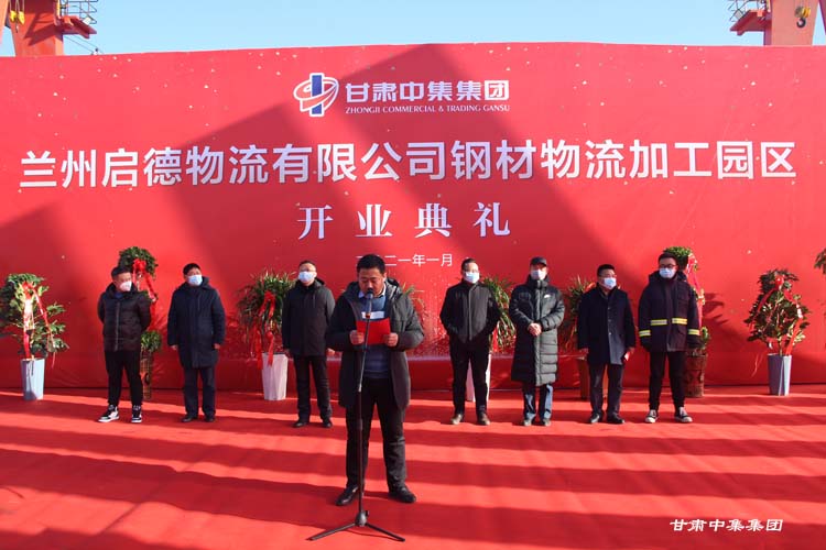 2021年1月12日上午10:18分,甘肅中集實業(yè)集團有限公司旗下蘭州啟德物流有限公司河口鋼材物流加工園區(qū)開業(yè)慶典在甘肅物產(chǎn)集團河口物流園隆重舉行。甘肅中集實業(yè)集團有限公司黨委書記、董事長周啟濤隆重宣布物流園開業(yè)。酒鋼集團、八一鋼鐵集團、內(nèi)蒙古包鋼集團、甘肅省物產(chǎn)集團河口物流園、甘肅省鋼材商會、物流園轄區(qū)及公司合作伙伴等100余名領導嘉賓參加開業(yè)慶典。
